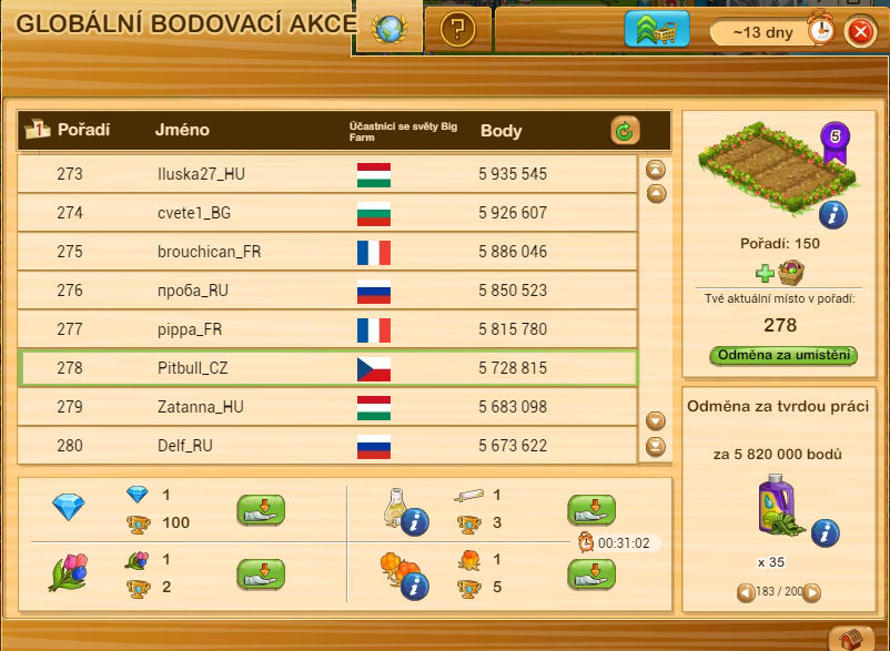 Za akci nezískáte pouze budovu ale také odměny za počet bodů a také body za umístění v žebříčku