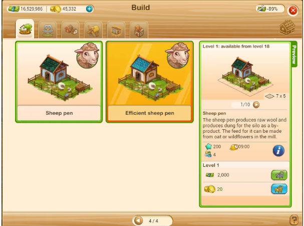 Ovčín bude k dispozici na hlavní farmě pro hráče nad úrovní 18. Můžete si vybrat běžný ovčín, který lze zakoupit za dolary, nebo efektivní ovčín, dostupný za zlato. Stačí otevřít stavební nabídku hlavní farmy a vybrat si ten, který chcete!